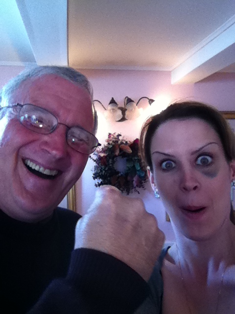 Thank God Mike is a doctor because his quick thinking probably saved my life, as he handed me an ice-pack and told me he “couldn’t believe a 4 year-old kicked my ass.” What was obviously not funny to me at the time became uproariously amusing to me the next morning when my eye was entirely black and blue and Mike and I had a sexy rendezvous planned for later that night. In preparation for our date, I had purchased a slutty little red dress, fake eyelashes, tanning lotion and decent underwear. And to further profess my marital devotion, I even popped the maximum recommended dosage of Advil and went to the waxing Nazi. I had every intention of looking saucy in hopes that Mike would realize being trapped into a lifetime of servitude to me can occasionally be rewarding. Sadly, we looked like Ike and Tina Turner and since my face hurt when it came into contact with oxygen, doing it was altogether out of the question. We ended up watching some romantic episodes of “Cheaters”and some fucked up murder shows in our hotel room instead.