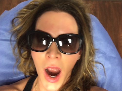I pulled up to Erin’s house to pick her and her sweet, innocent sister (whom she also demanded be in attendance) up and watched with squinty eyes as she loaded a styrofoam cooler full of ice packs into my car. She then plucked a Bible out of a bag of stuff she was donating to Goodwill and tossed it on the seat. Her kids asked where we were going. Without missing a beat, she said, “We are going to go get our lips waxed.” I didn’t even get her joke until like twenty minutes later because I was so stressed out.